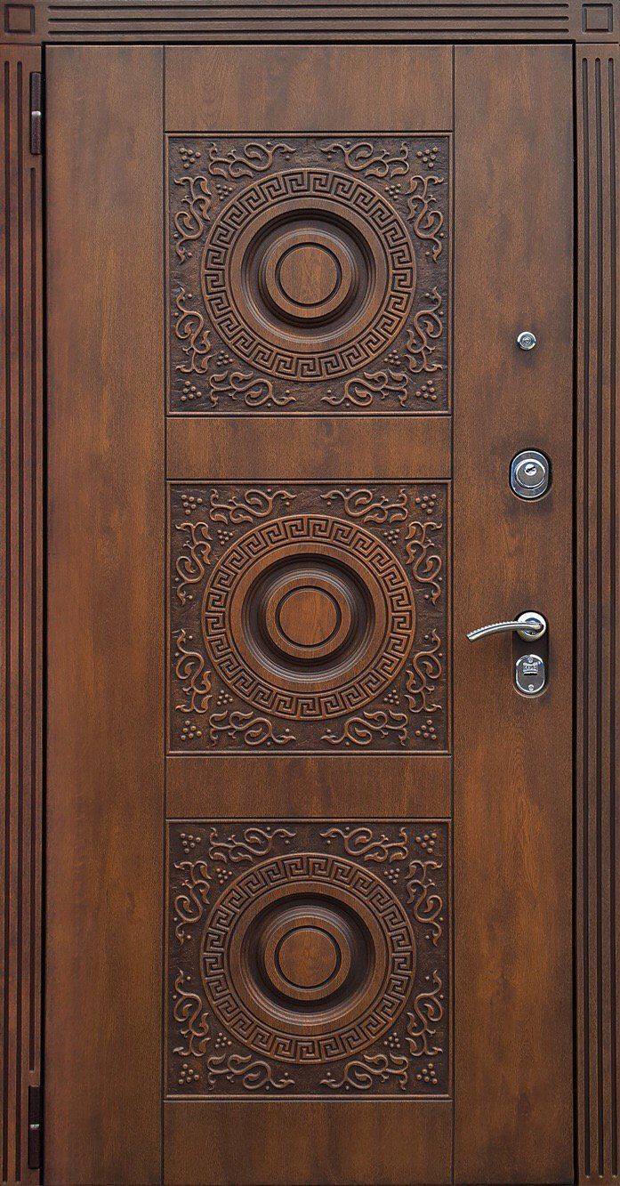 При изготовлении двери с отделкой виноритом на заказ, её можно сделать как глухой, так и декорированную вставками из стекла с элементами ковки. Для установки в дом такую дверь можно сделать с применением терморазрыва, и эта дверь будет надежно сохранять в доме тепло, не промерзая и не конденсируя.