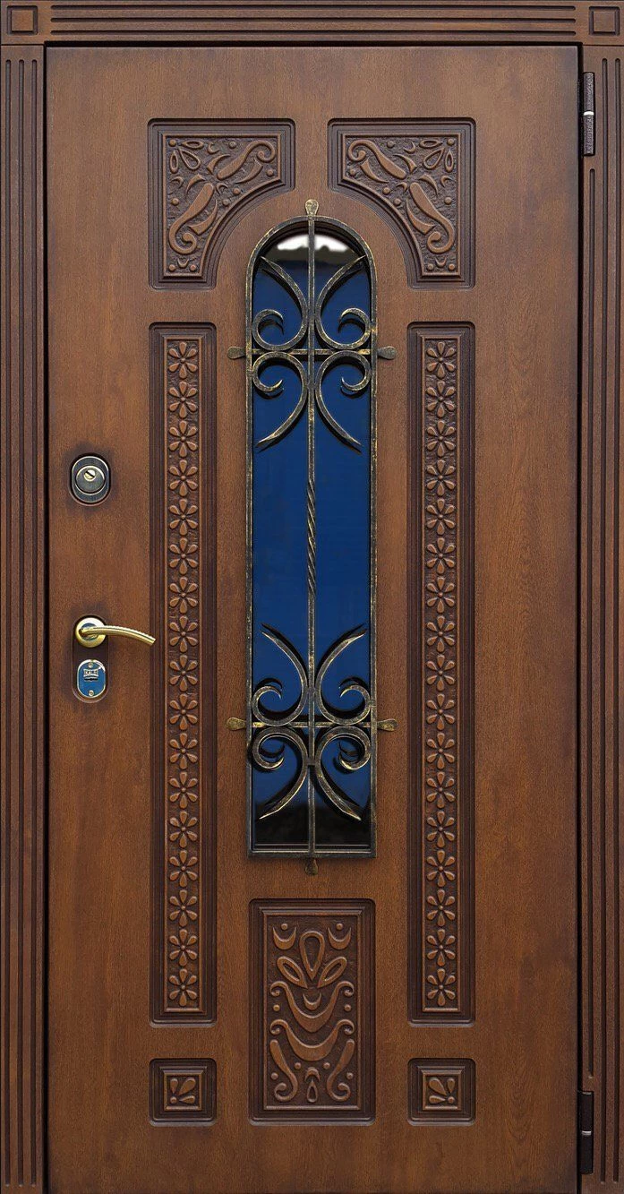 Входные двери в Ижевске с применением декора витражом изготавливаются из стального профиля, придающего прочность конструкции, а сама витражная вставка обладает высокой взломостойкостью, поскольку для витражных композиций используется специальное стекло, обработанное особым образом. Усилить надежность витражного элемента можно с помощью использования декоративных кованных решеток.