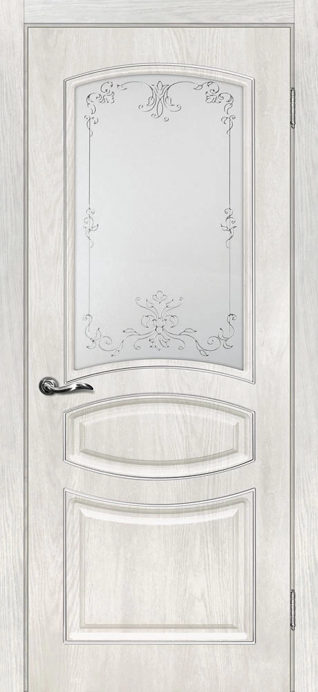 Качественная Межкомнатная дверь Сиена-5 Дуб жемчужный продается по цене 11 845 руб. за полотно. Доступные размеры 550x1900, 600x1900, 600x2000, 700x2000, 800x2000, 900x2000. Так же в наличии большой выбор комплектующих к данной модели, подходящих по цвету и фактуре.
