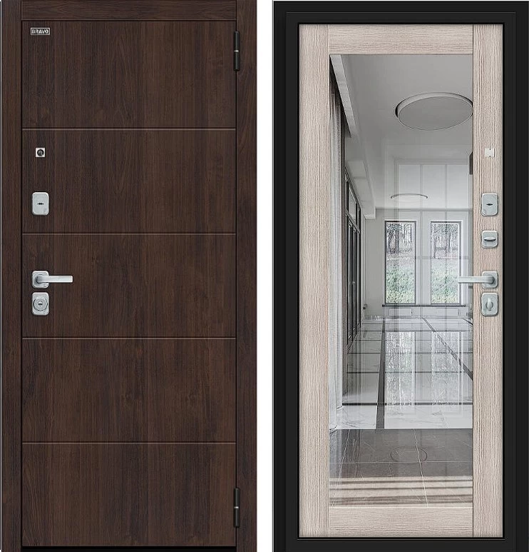 Надежная входная Дверь Браво Флэт/BChrome Almon/Cappuccino Melinga премиум класса по цене 42 147 руб. Большая толщина стали защитит от проникновения в ваш дом, квартиру или коттедж. Используется очень качественная фурнитура: замки, цилиндры, ручки, защелки. Покрытие и отделка двери изготовлено под внимательным контролем производителя. Дверь имеет долгий срок службы и гарантию.