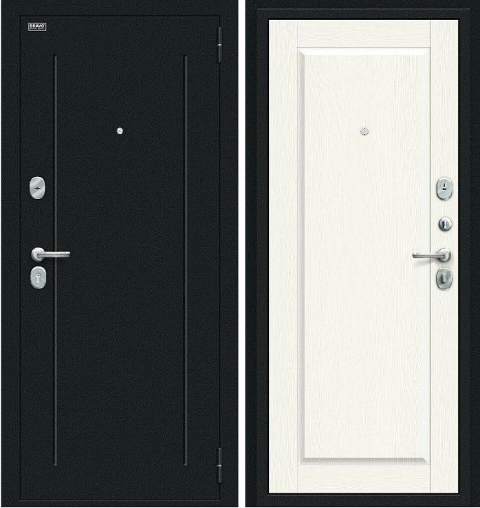Надежная входная Дверь Браво Сьют Kale Букле черное White Wood премиум класса по цене 36 217 руб. Большая толщина стали защитит от проникновения в ваш дом, квартиру или коттедж. Используется очень качественная фурнитура: замки, цилиндры, ручки, защелки. Покрытие и отделка двери изготовлено под внимательным контролем производителя. Дверь имеет долгий срок службы и гарантию.